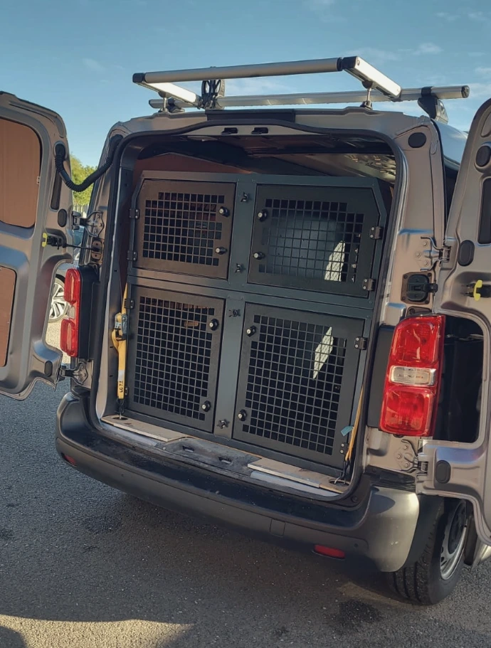 Our dog vans are designed around canine safety, with secure compartments, good ventilation, and sturdy fittings to keep dogs protected while travelling.